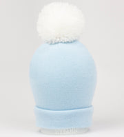 This Baby Blue Beanie With White Pom Pom is handmade in the USA and is the perfect accessory to bring your newborn home in style. The soft baby blue color adds a touch of cuteness, while the white pom pom adds a fun and playful detail. Keep your baby warm and stylish with this adorable beanie.