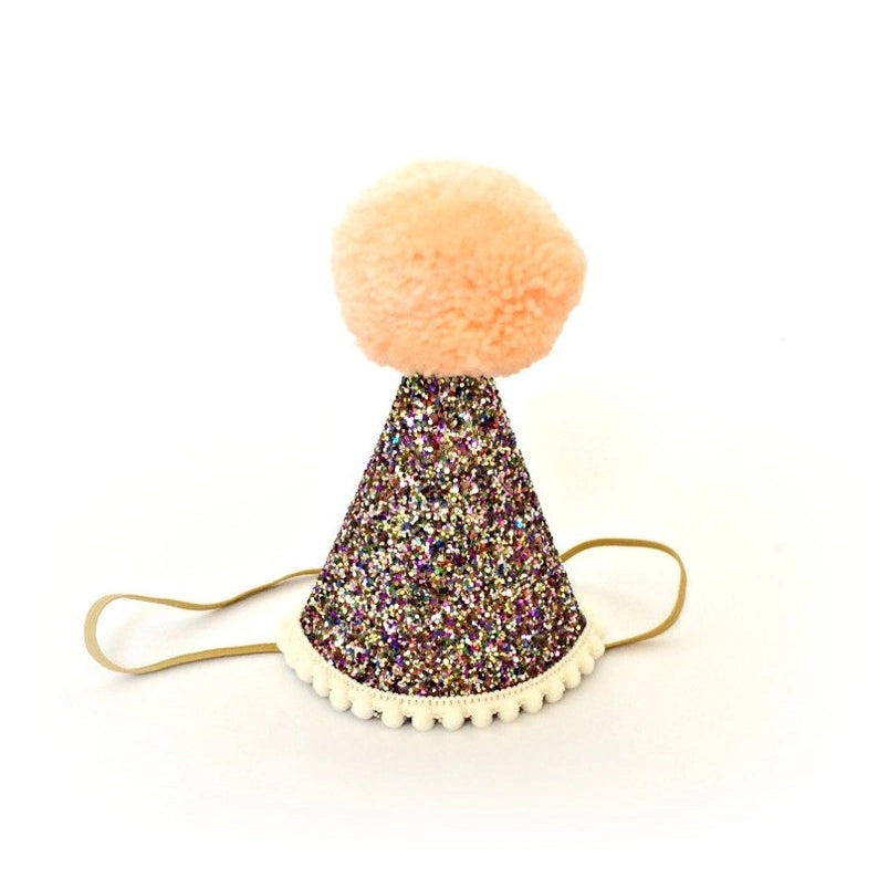 Little Blue Olive's party hats and crowns are attached to a comfortable elastic and meant to be worn around the back of the head, behind the ears. Tilt to the side for a fun, whimsical look!