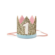 Birthday Pale Gold/Aqua Glitter Trim Crown | 1 or ONE