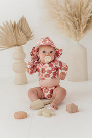 Keep the sun of your baby's head with our Sun Hats. Made with our same swim material (recycled poly and spandex), our Sun Hats are comfy and adjustable with the tie. UPF 50.