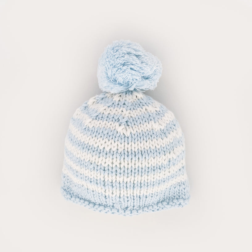 This newborn pom pom beanie is expertly hand-knit from 100% cotton, providing gentle warmth and comfort for your baby’s delicate head. Designed with a roll-up brim, it allows for a slight adjustment to fit most newborns perfectly. Ideal for capturing first portraits or as a thoughtful gift for baby showers and hospital visits. Available in soft Baby Pink or Baby Blue, this hat combines quality craftsmanship with practical sizing. Cold handwash recommended to maintain its softness and shape.
