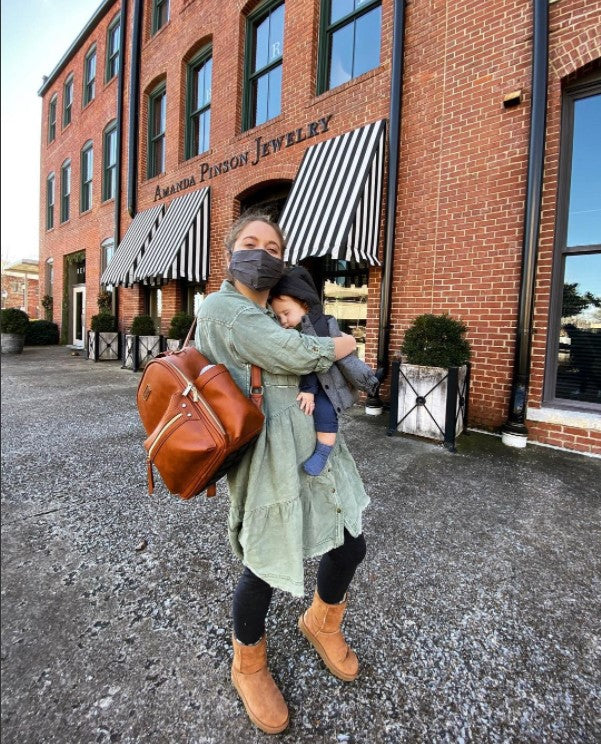 Hands free in a hurry! The Mini Diaper Bag Backpack is the perfect size to grab and go for quick outings or when you only need to bring along the essentials. 8 total pockets, 4 interior and 4 exterior. Zippered pocket to store matching changing pad and add comfortable padding on the back. Features signature rubber feet that protect the base of the bag from dirty surfaces and wear and tear.