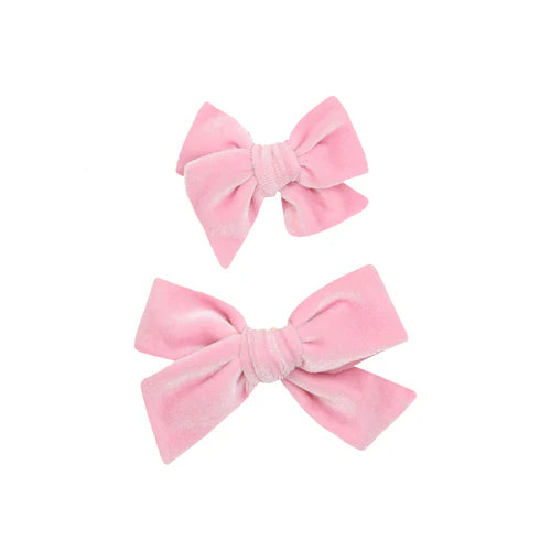 Dress your little one up with our soft velvet bow pigtail set! Handmade by local moms from soft, high-quality velvet. This is the perfect bow for your darling little girl! All bows are secured so they do not come undone!
