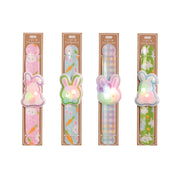 Light up the fun with these playful slap bracelets featuring adorable LED character designs! Each patterned bracelet wraps around your wrist with a satisfying snap and glows with vibrant light-up magic. Perfect for Easter celebrations, party favors, or everyday excitement. Comes beautifully presented on a display card nestled in a charming cotton rope basket—ready to gift or display. Watch kids' faces light up as bright as the bracelets themselves!