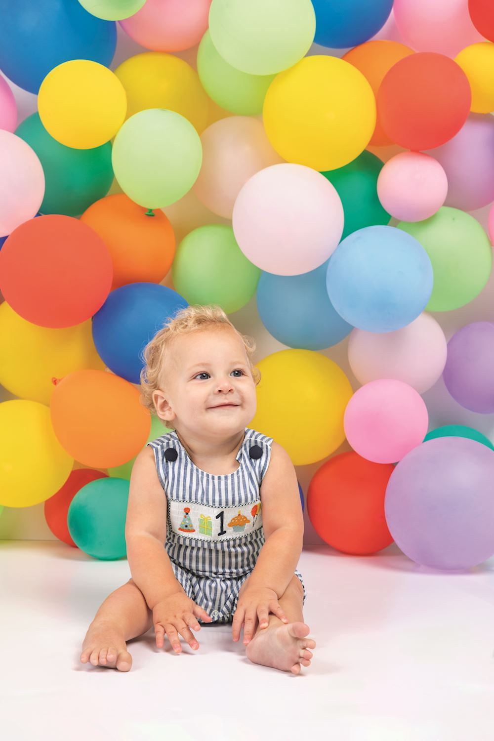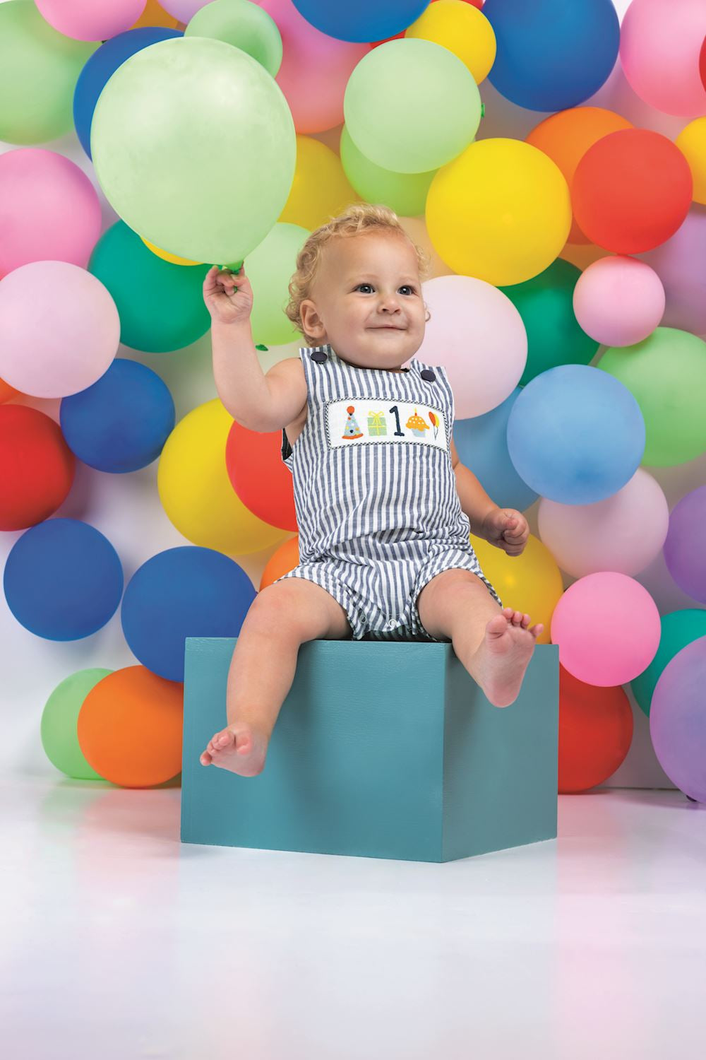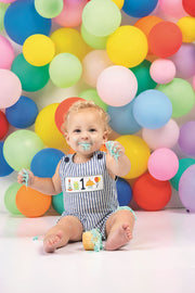 Celebrate your little one's first birthday in style with this charming woven stripe Jon Jon. Featuring classic button shoulders and an adorable smocked chest panel, this one-piece is perfect for milestone photos and special occasions. Convenient inner leg snaps make diaper changes a breeze, while the timeless smocking detail adds handcrafted charm. An ideal keepsake outfit for baby's big day.