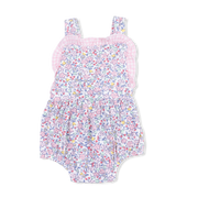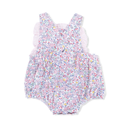 Adorable ruffled bubble romper perfect for your little one's garden adventures! This charming piece features delicate ruffles that twirl and bounce with every giggle and movement. Crafted with soft, breathable fabric, it's designed for all-day comfort whether she's playing in the yard or attending a special occasion. The sweet Elizabeth's Garden design captures that whimsical, nature-inspired aesthetic that makes getting dressed fun. Easy to slip on and move in, this bubble romper is a wardrobe essential that combines style with practicality for the modern baby girl.