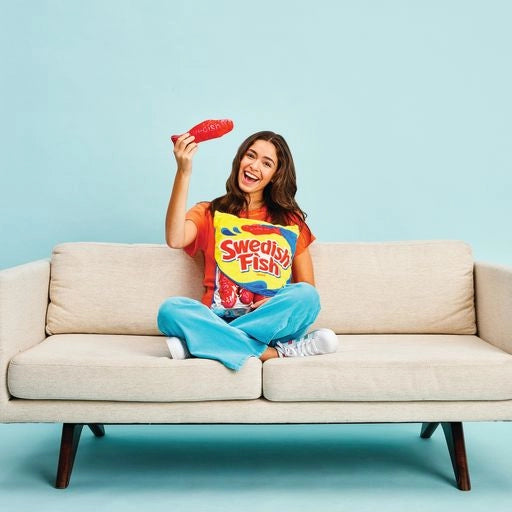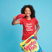 Reel in the fun with this Swedish Fish Packaging Fleece Plush! This whimsical plush bag comes stuffed with five removable fish friends, each crafted from super soft fleece. The zippered closure keeps your collection secure, while charming embroidered details add personality. Made from 100% polyester with polyfiber fill, it's huggable, squeezable, and endlessly playful. Measuring 17½" w x 11¼" h x 5" d, it's the perfect size for snuggling or displaying. A quirky, giftable piece that brings candy-inspired charm to any room!