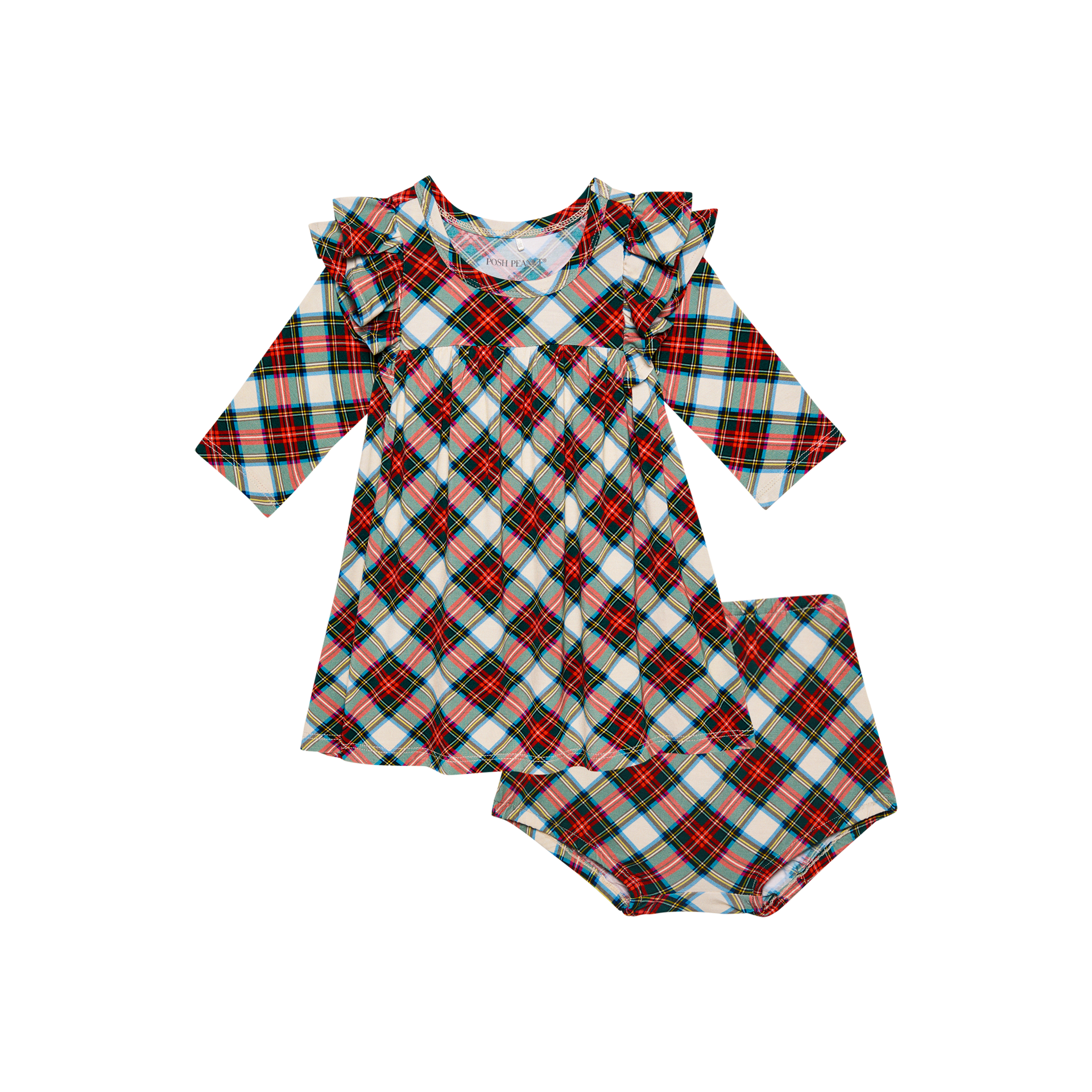 Your peanut will be comfy all day in our 3/4 sleeve flutter dress bloomer set! Designed with buttery soft viscose from bamboo that stretches as they grow, this 2-piece set makes a great cold-weather outfit and is an adorable staple for your kiddo's collection. Style with your favorite Posh Peanut® accessories for ultimate cuteness!