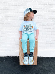 Sizes Infant, Extra Small, Small, Medium have logo grips on the bottom of the feet large have a stitched logo on the bottom of the feet.