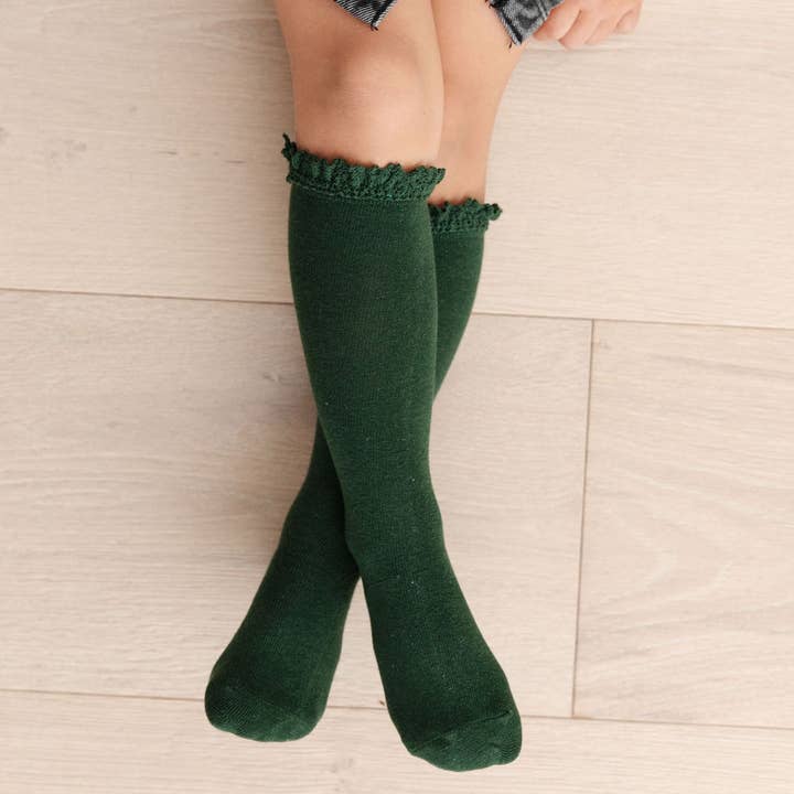 Lace Top Knee Highs for babies, toddlers and girls! These vintage inspired knee high socks are perfect for all of her girlhood adventures. Machine wash cold with like colors. Tumble dry low or lay flat to dry.
