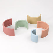 The Sky's the Limit! Unlock a rainbow of creativity with the Ritzy Rainbow™ stacking toy. Featuring five flexible arches in assorted colors and sizes, this toy helps baby develop hand-eye coordination, cognitive reasoning, and fine motor skills as they stack, nest, sort, and play. 5 arches for stacking & nesting. - Made of TPE - soft, flexible plastic material. - 5 arches for stacking & nesting. - Helps develop hand-eye coordination. - Early learning STEAM toy. - Hand wash with mild soap.