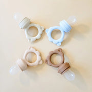 Why you'll love it: - Entire feeder is made of CPSC tested and certified silicone - Free of BPA, PVC, Phthalates, and Lead - Easy to clean - Design silicone handle makes it easy for little hands to hold - Safely introduce new foods - Promotes self-feeding skills - Both the silicone handle and nipples soothing on swollen gums and relieves teething pains.