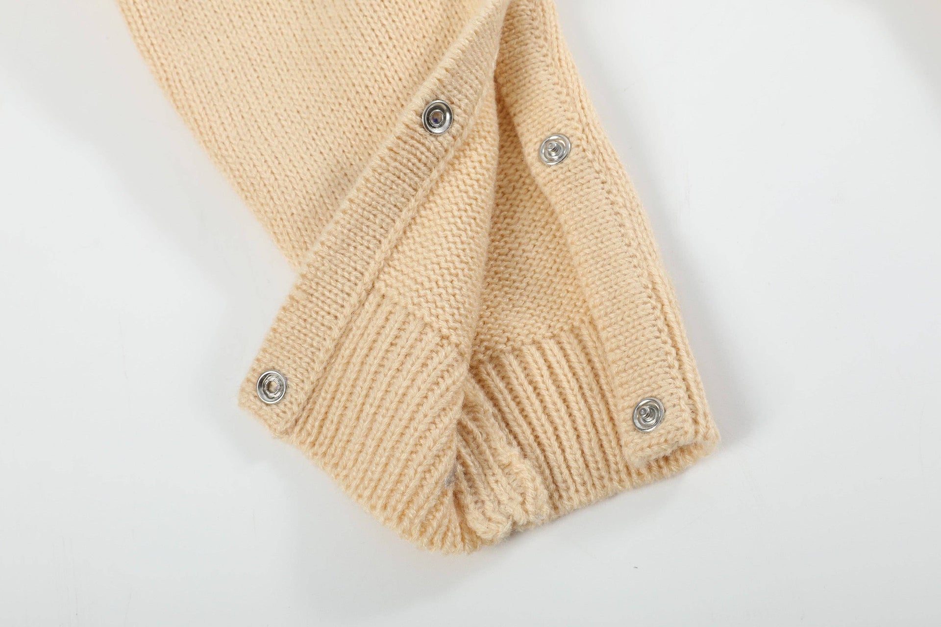 This Light Brown Pumpkin Knit Romper is an adorable and practical choice for your little one. Featuring a beautifully embroidered pumpkin, it captures the essence of fall in a cozy, soft knit design. Coordinating buttons at the shoulder allow for adjustable sizing, while convenient crotch snaps make diaper changes a breeze. Available in sizes for infants, babies, and toddlers up to 2T, it’s perfect for seasonal outings and family gatherings.