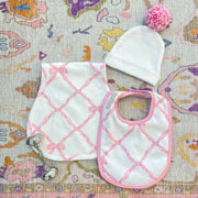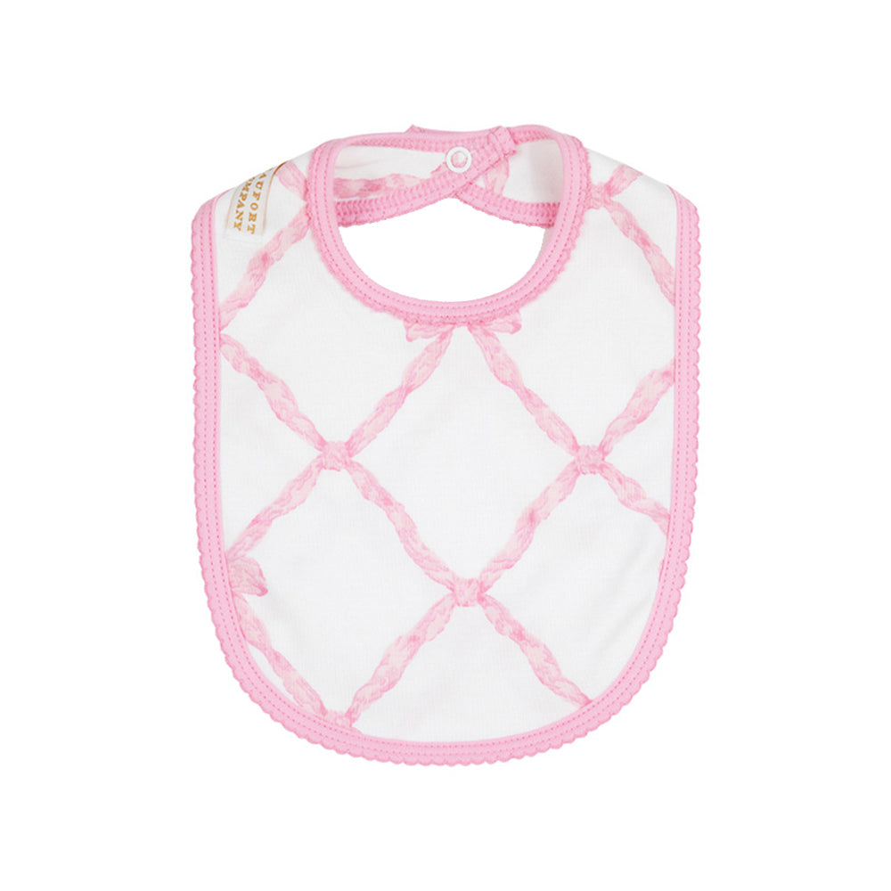 Our Burp Me Bib makes cleaning up easy after mealtime. Your little lady will stay polished and mess free with this sweet bib in Palm Beach Pink Gingham!