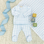 Introducing our newest set for your newest bundle of joy! Our Cameron Cross-Front Set in Buckhead Blue Gingham features snaps down the front and makes for the most perfect + precious newborn gift.