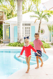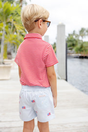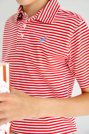 Prim & Proper Polo | Richmond Red Stripe With Barbados Blue Stork ** FINAL SALE **