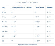 Our Sir Proper's Romper is a comfy, cozy & cute option for your little gent! Featuring leg snap closures for easy diaper changes, your little guy will look so handsome in this little romper.