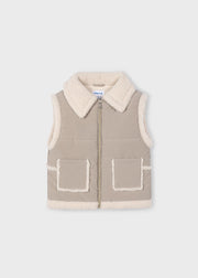 This girls' Sherpa vest combines style and warmth with a quilted textile exterior and a cozy wool-blend lining. Featuring a soft faux fur collar and practical front zip closure, it offers both comfort and convenience. Functional front pockets add utility, while the use of recycled polyester supports sustainable fashion choices. Ideal for layering, this vest keeps her warm without bulk.