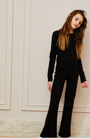 The Mae Black Flare Legging by Theme NYC offers the perfect blend of comfort and style for everyday wear. Crafted from a premium cotton-spandex blend, these leggings provide softness, stretch, and durability. The flattering flared leg is accented with delicate lace trim at the hem, adding a subtle touch of elegance. Designed for versatile styling, they can seamlessly transition from casual school days to polished weekend or dressy looks. With a fit that ensures all-day comfort, the Mae legging is a wardrobe essential that pairs well with everything from cropped sweaters to silky blouses.