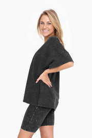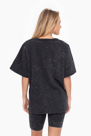 Women's Cozy Mineral Washed Shirt and Short Set || Black