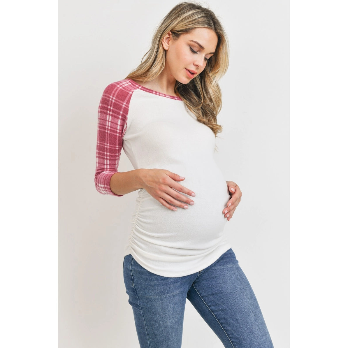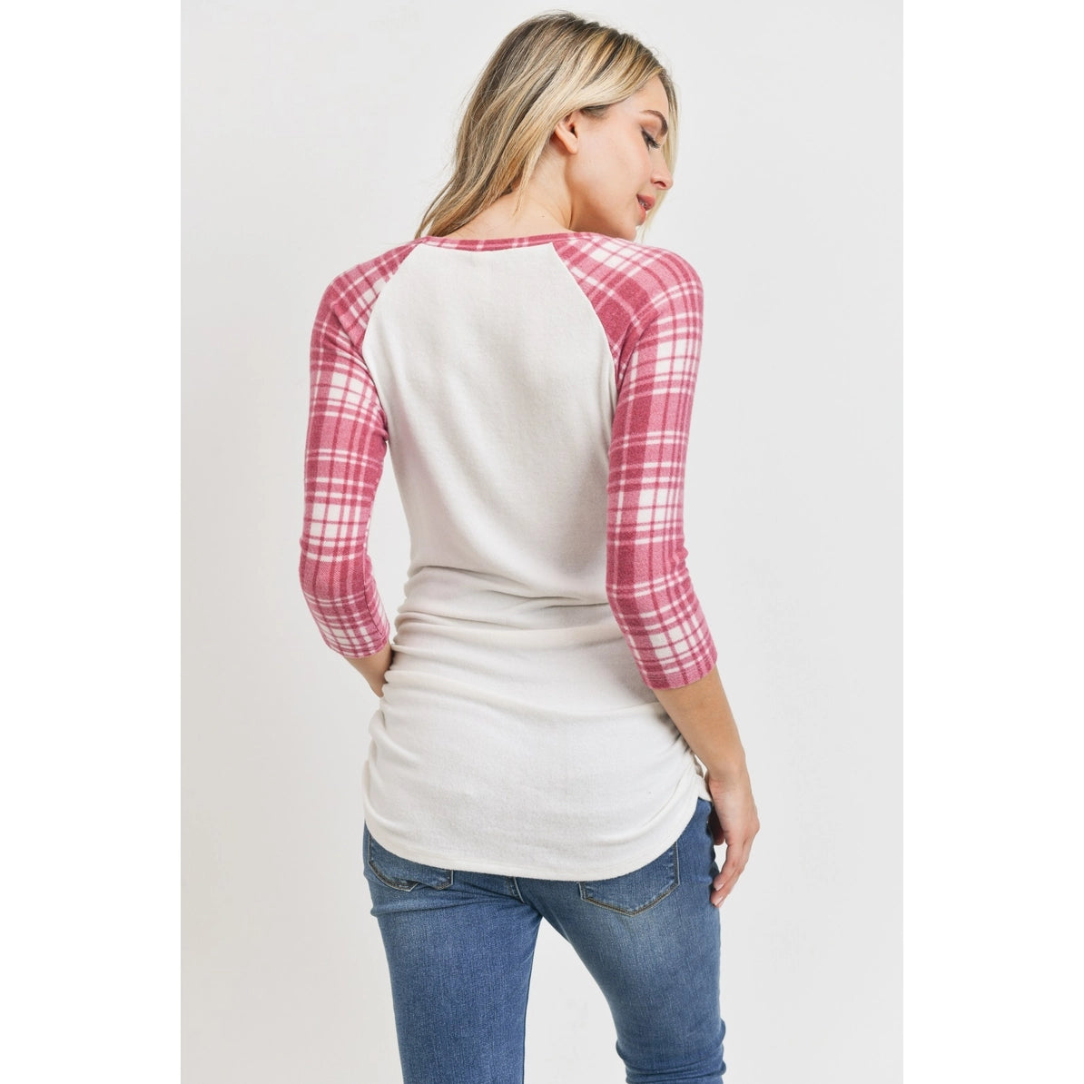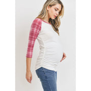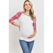 3/4 Sleeve Plaid Raglan Maternity Knit Top **FINAL SALE**