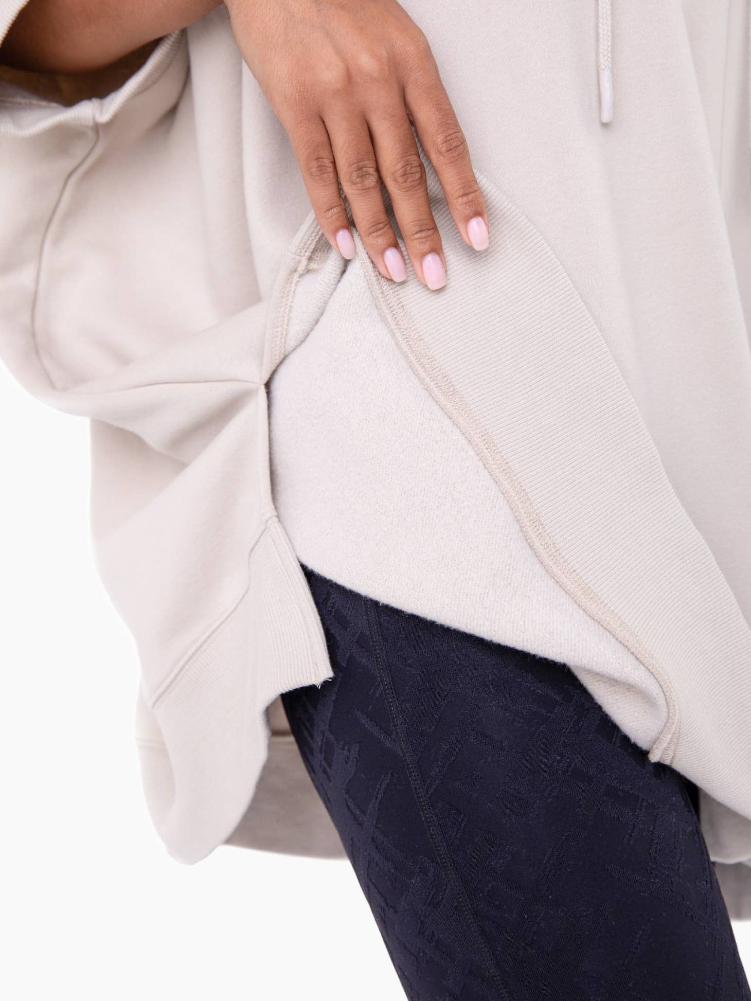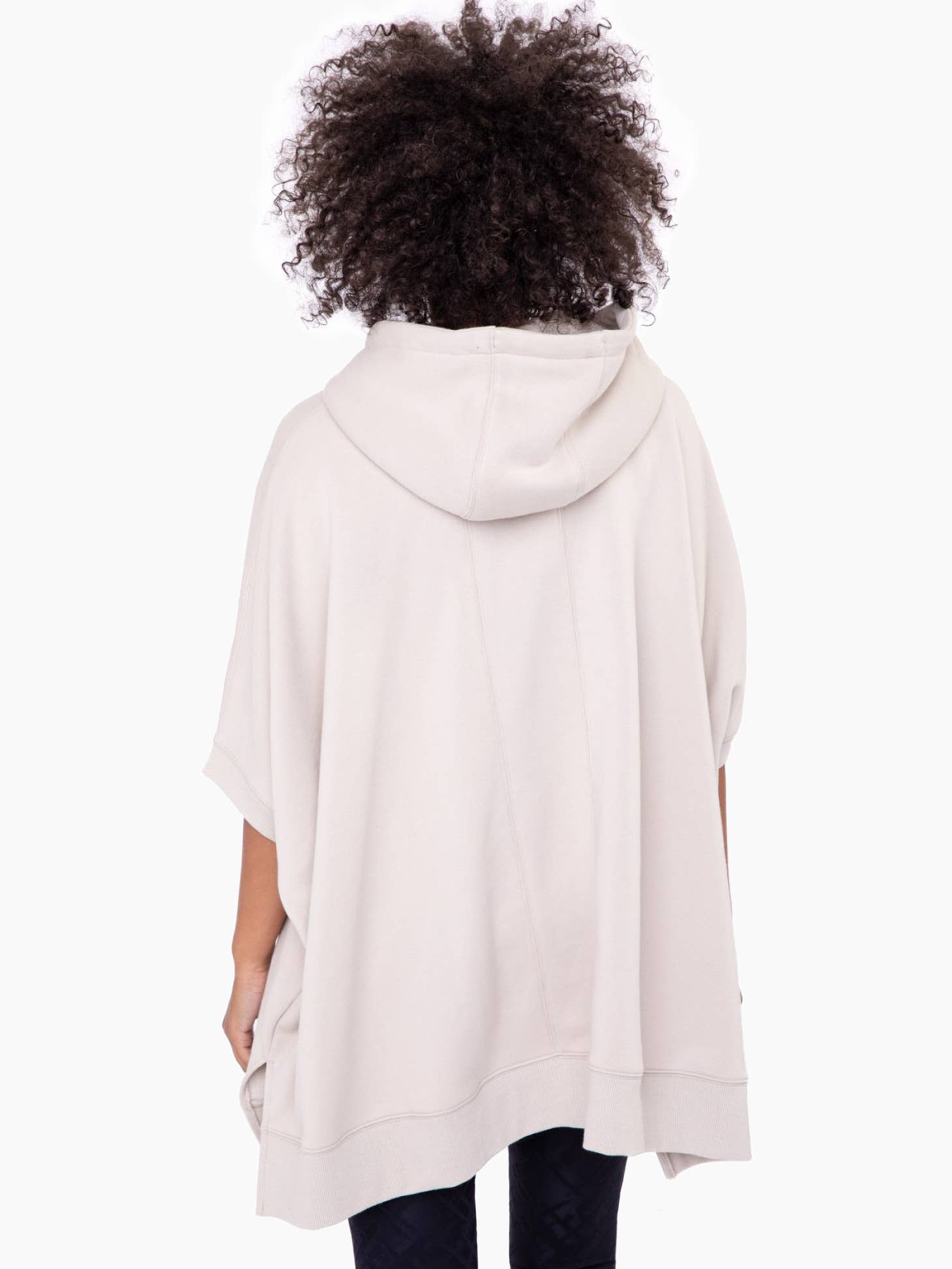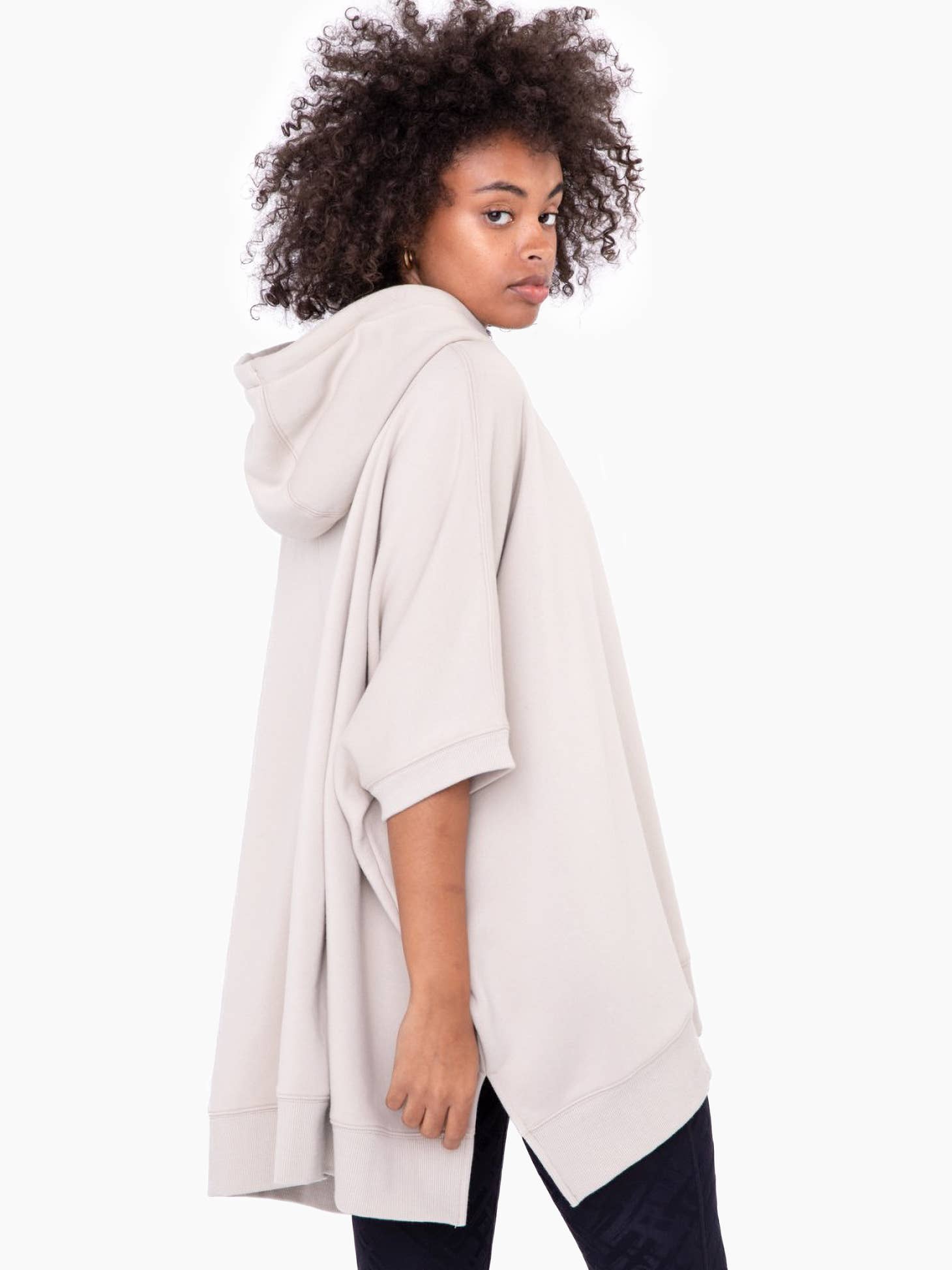 Cozy on up with our oversized half sleeve hoodie sweatshirt. Made from a soft cotton-blend terry knit material. The boxy silhouette makes this top easy to throw on when you just want to chill. The hood has a drawstring for an adjustable fit.
