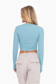 Essential Micro-Ribbed Long-Sleeved Cropped Athleisure Top || Grey Teal
