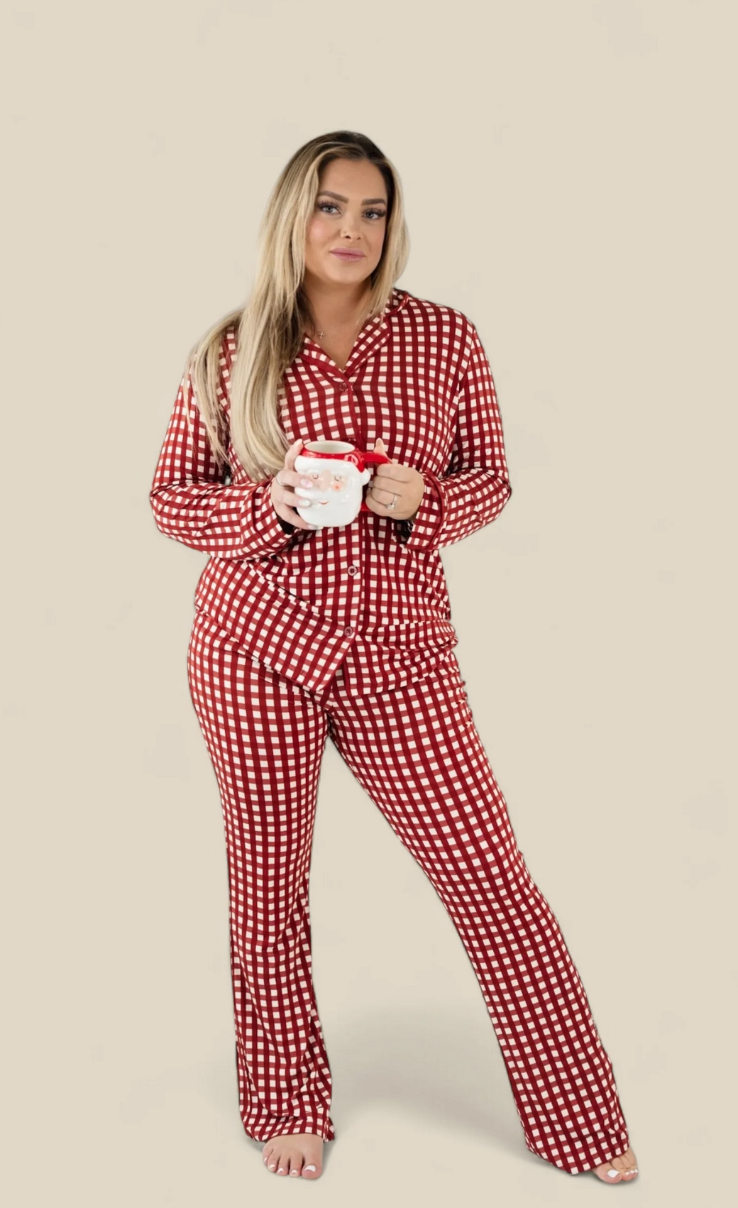 Celebrate the season in cozy, classic style with the Peppermint Plaid Women’s Dream Flare Set. Featuring a rich holiday burgundy plaid and buttery-soft fabric, this chic flare pant set is made for fireside lounging, gift wrapping, and all the memory-making moments in between. It’s festive, flattering, and made to match your little ones for the ultimate holiday look.