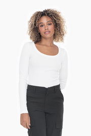 Slim Fit Scoop Neck Long Sleeve Top | White **FINAL SALE**