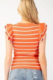 Striped Ruffle Short Sleeve Top | Orange Stripe