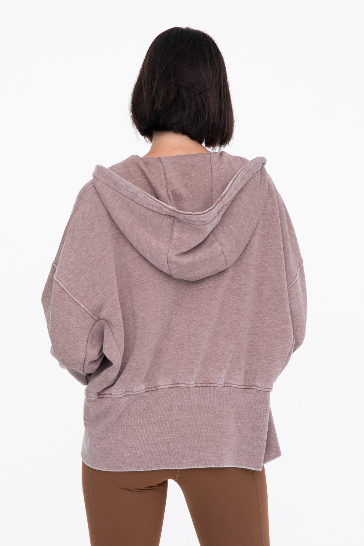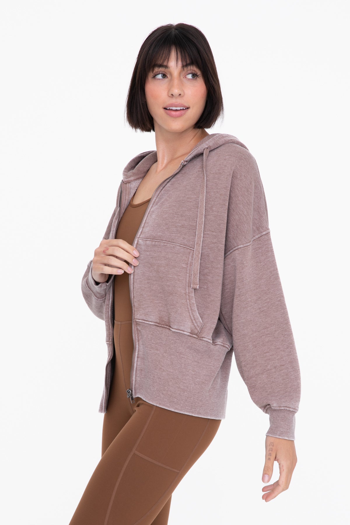 With its dropped, tapered long sleeves and wide hem cuff, this zippered jacket exudes a casual, relaxed look. It features a hoodie with drawstring closure and kangaroo pockets.