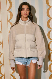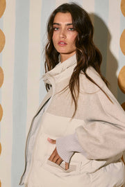 Stay cozy in style with this oversized puffer crop jacket that's ready to keep you toasty all season long. Featuring a sharp stand collar, front zipper closure, and long sleeves finished with ribbed cuffs, this jacket delivers both warmth and attitude. The relaxed oversized silhouette gives you that effortlessly cool vibe while the plush puffer construction wraps you in serious comfort. Perfect for layering or wearing solo, it's your new go-to for looking put-together without trying too hard.