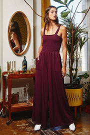 Effortlessly chic and oh-so-comfy, this smocked bodice jumpsuit is your new go-to for looking put-together without trying too hard. The fitted smocked top with delicate straps creates a flattering silhouette, while wide-leg pants keep things breezy and fun. And those adorable front pockets? Perfect for stashing your essentials or just looking fabulous. Throw it on for brunch, errands, or whenever you want to feel like the best-dressed version of yourself.
