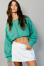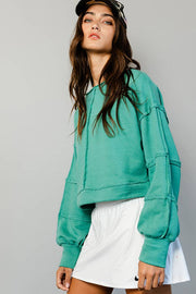 Raw-edge Detail Solid Terry Crop Pullover Top
