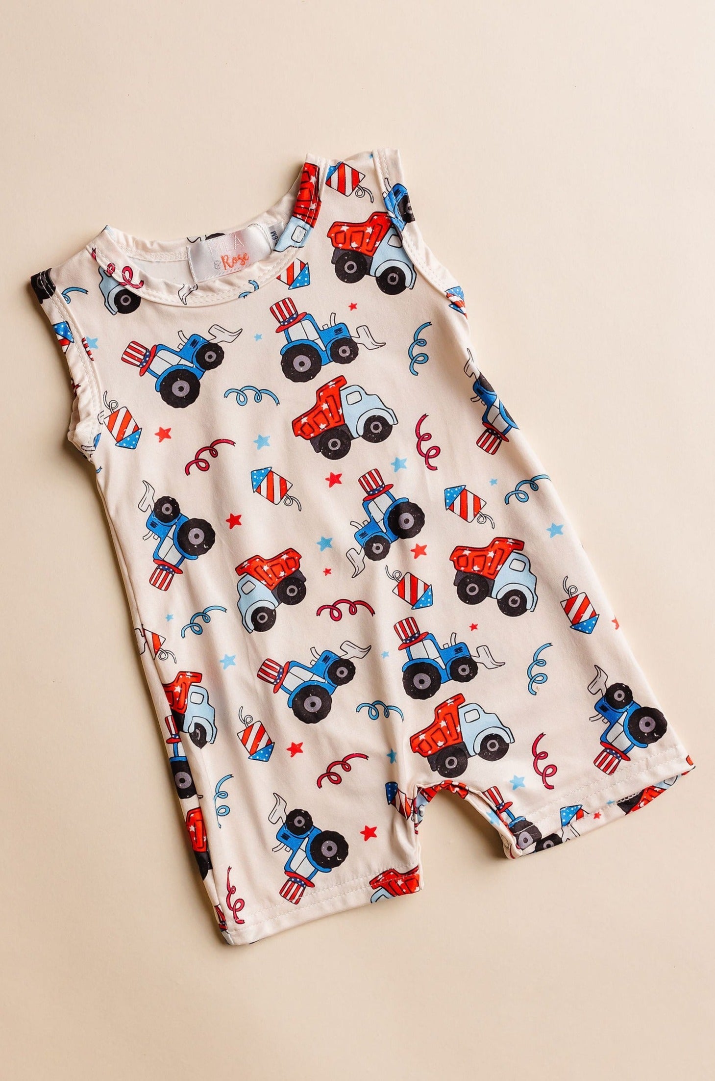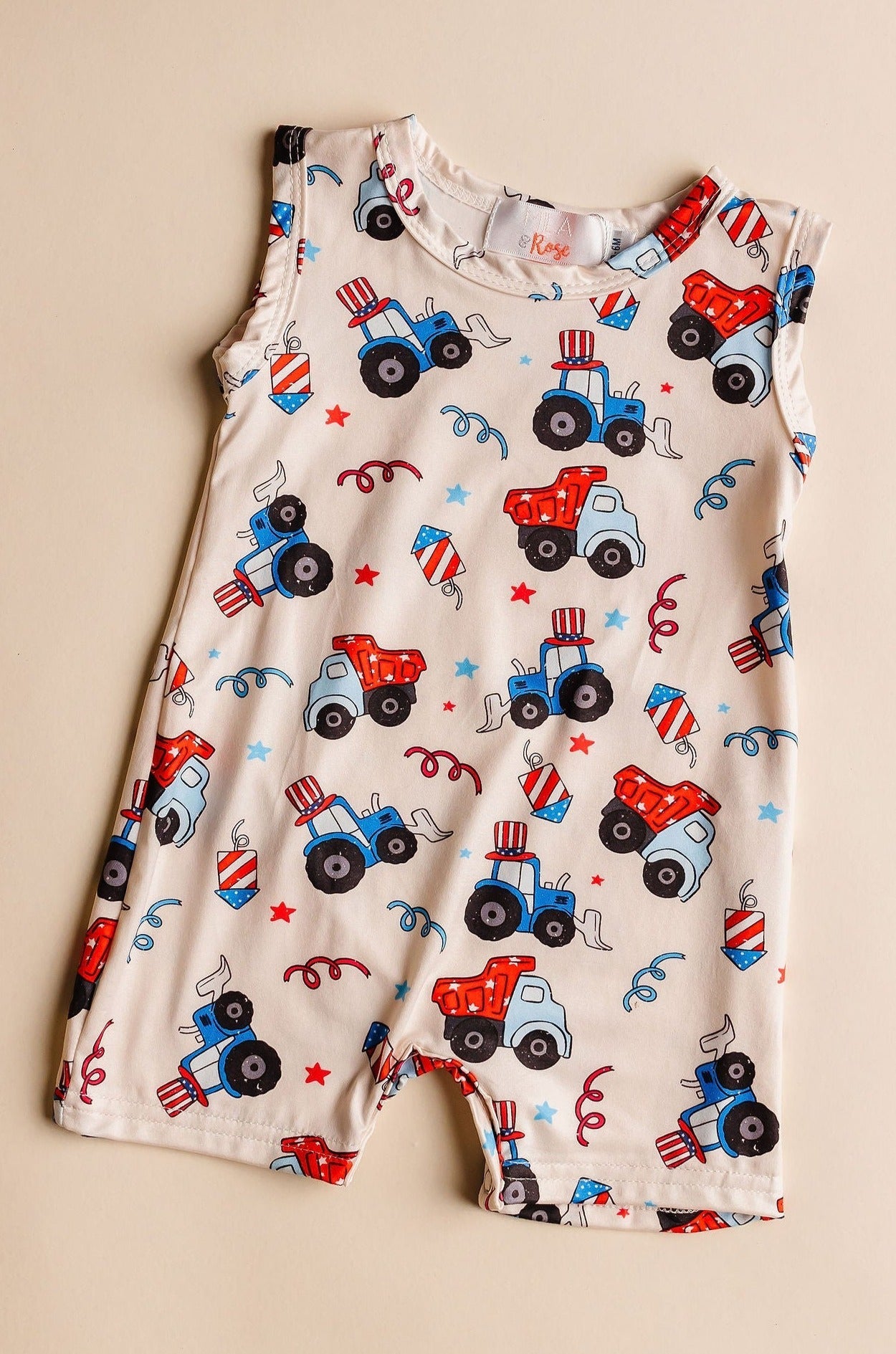 4th of July Tractor Shorty Romper ** FINAL SALE **