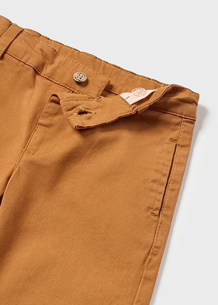 Trousers for baby. Single button fastening. Faux flies. Adjustable elastic waistband with buttons inside the waistband for a better fit. Made from soft elasticated cotton fabric. Comfortable and resistant twill fabric.