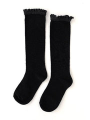 Black Lace Top Knee Highs for babies, toddlers and girls! These vintage inspired knee high socks are perfect for all of her girlhood adventures. Machine wash cold with like colors.