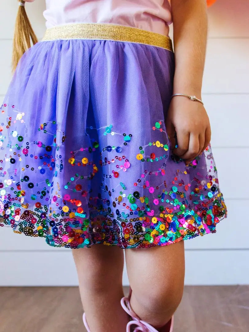 Festive and fun! The lavender confetti tutu for babies and kids is a fun skirt, and dress-up tutu, to celebrate birthdays, or everyday!