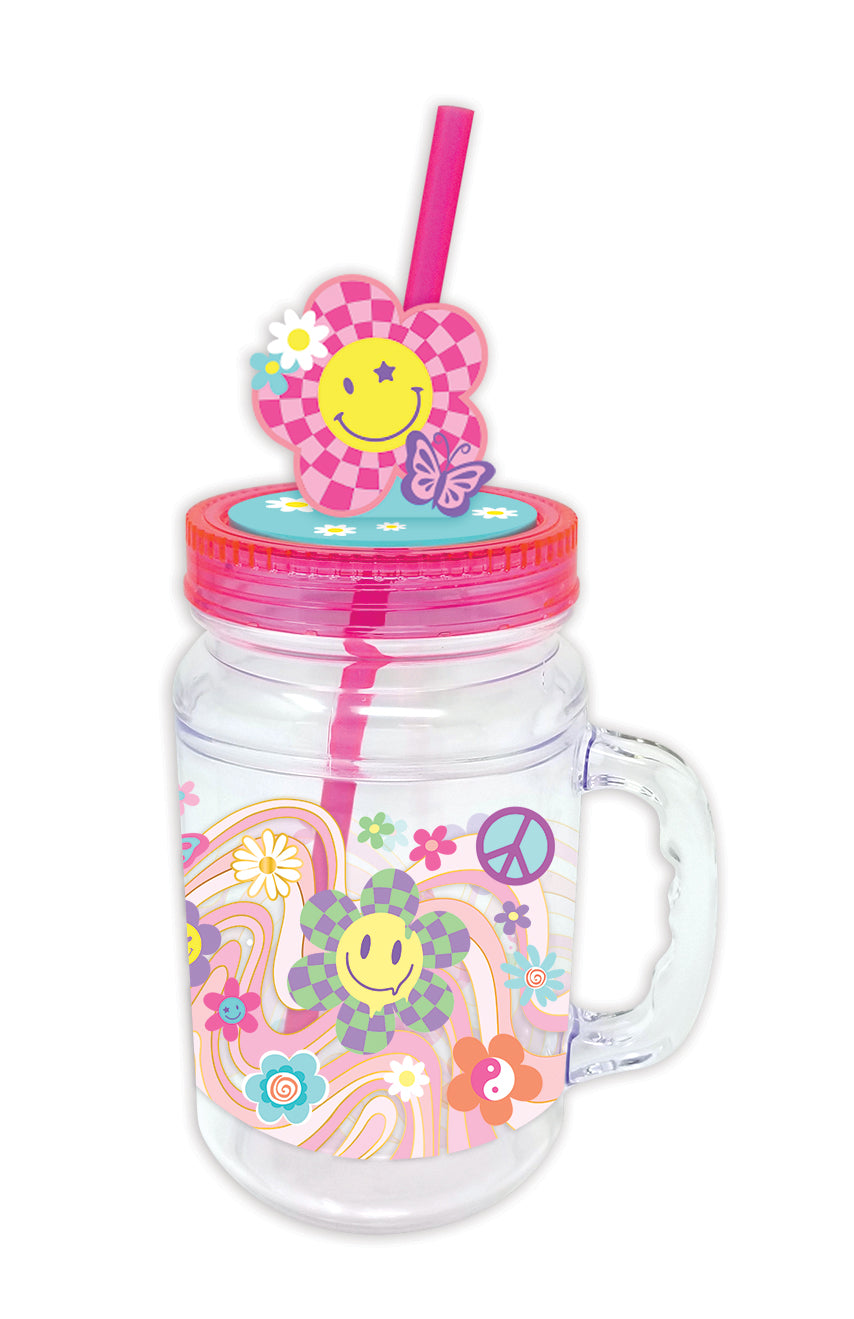 This Mason Jar drink cup with groovy flower straw is perfect for little girls who want to feel grown-up. Made from durable materials, it is both functional and stylish. The groovy flower design adds a fun touch, making drinking more enjoyable. Give your little one a sense of independence with this chic and practical cup.